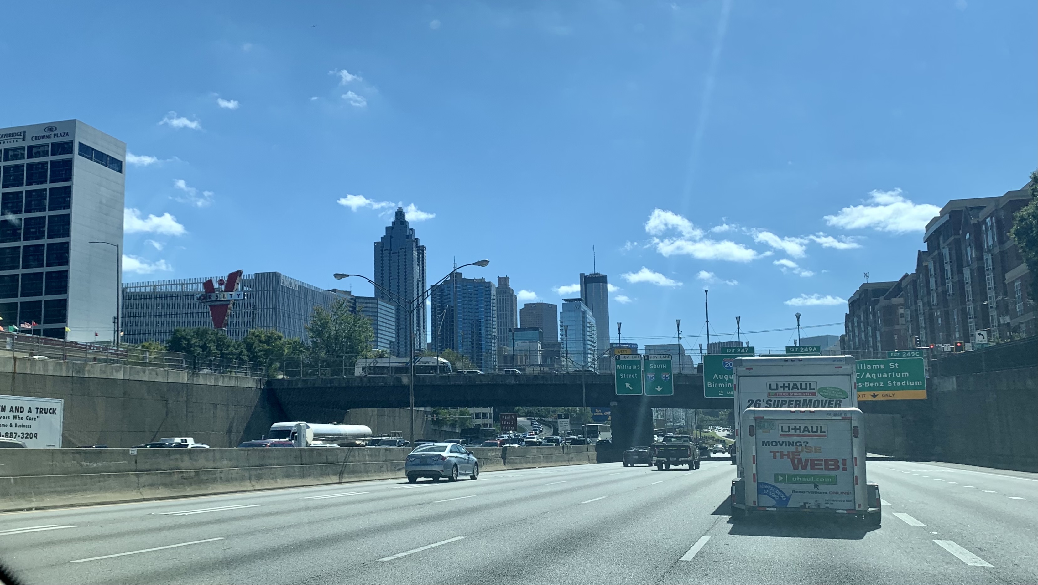 We are now finally on our sixth day and with the exception of our detour from Evanston Wyoming down through Denver Colorado, we have had a very smooth trip. The driving has been easy and time has passed rather quickly so this road trip has not been too bad. I think the big storm we had through Kentucky was our most stressful driving conditions so far, maybe tied with the long winding Rocky Mountains. And I say with all sincerity even those were not hideous, it wasn’t until we hit Atlanta that I really felt stressed. The traffic is awful, we came through on Saturday and traffic was thick and bogged down for miles, and these are some aggressive drivers. They do not have patience. I’ve seen a lot of interesting driving across America but these folks take the cake. They drive fast, weaving in and out, sometimes missing the front of your car by just a couple of feet. They ride your tail so close if you were to hit your breaks you know they’d be in your back seat. And the thickness of the traffic on a Saturday makes me shutter to think what the weekday commute must be like. No offense but no thank you! Gene and I both agreed there is zero part of us that would ever want to live anywhere close to that hot mess. I’m sure it offers other great things and for those who don’t mind this it’s probably got many great things going for it, but the traffic alone was enough for us to say a big no thanks on that one.